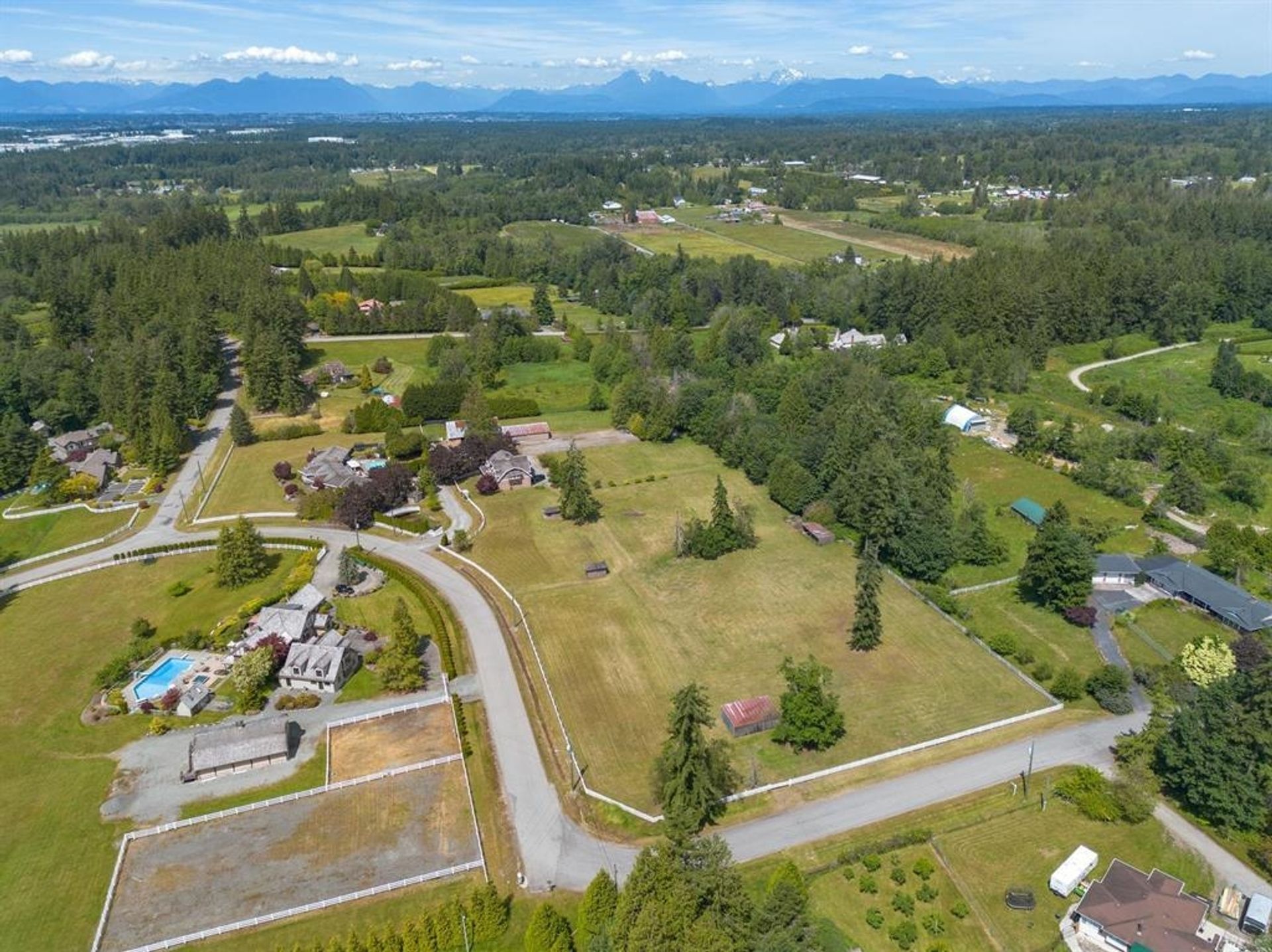 Experience Unmatched Country Living in Ellenbrook Estates: A 7.07-Acre Dream Property. This is a rare find—flat, dry, elevated, NOT in the ALR.A world of possibilities for multi-family living, equestrian, +future potential development. Set at the top of the hill, A fully fenced and gated estate awaits. A sprawling 3,661 sq ft rancher home w/ spectacular views of White Rock.4 spacious bedrooms, 3 bathrooms, and a tastefully updated kitchen. The expansive rooms, wide open space including in-ground pool. The property also features a separate 3,400 sq ft detached studio, ideal for a home office, creative space, or rental income. Multiple barns and outbuildings, + 2-bed, 1-bath modular home, enhance the estate's versatility and potential. Seize this once-in-a-lifetime opportunity.