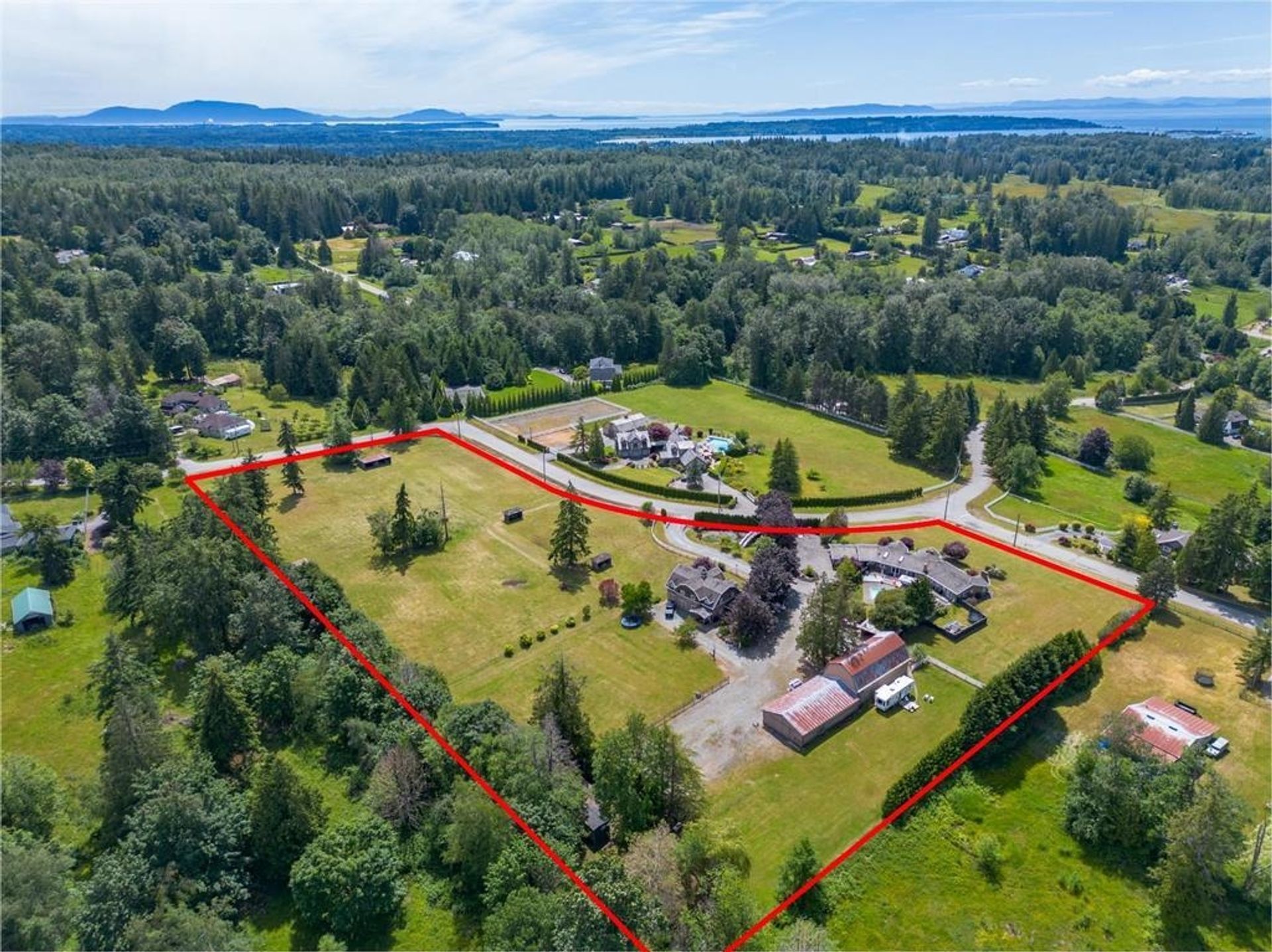 Experience Unmatched Country Living in Ellenbrook Estates: A 7.07-Acre Dream Property. This is a rare find—flat, dry, elevated, NOT in the ALR.A world of possibilities for multi-family living, equestrian, +future potential development. Set at the top of the hill, A fully fenced and gated estate awaits. A sprawling 3,661 sq ft rancher home w/ spectacular views of White Rock.4 spacious bedrooms, 3 bathrooms, and a tastefully updated kitchen. The expansive rooms, wide open… space including in-ground pool. The property also features a separate 3,400 sq ft detached studio, ideal for a home office, creative space, or rental income. Multiple barns and outbuildings, + 2-bed, 1-bath modular home, enhance the estate's versatility and potential. Seize this once-in-a-lifetime opportunity.