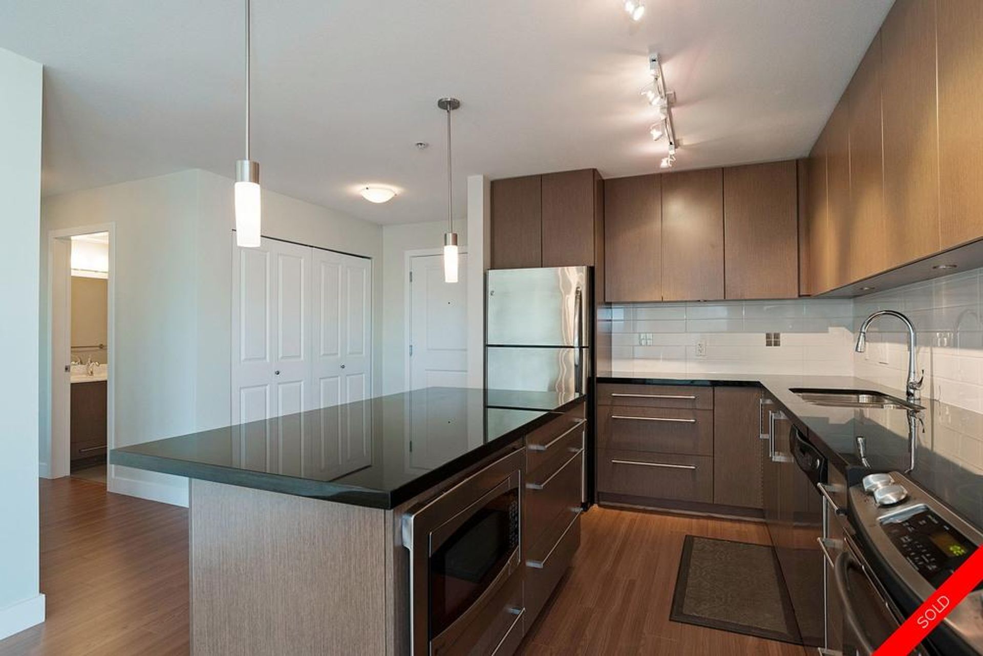 Welcome to Morgan Crossing. This Rarely available 3 Bedroom, 2 Bath unit is a large open plan featuring 1,237 Sqft of living space. A Choice corner unit with Tons of windows, natural light & partial mountain views. Features a Chef's kitchen with stainless steel appliances, laminate flooring & electric fireplace. Quality built and shows like new! Truly a turnkey lifestyle with Everything at your doorstep including Everything Wine, Thrifty's, Steve Nash Gym, London Drugs, great restaurants and a variety of shopping. Well run Strata with on-site caretaker. 2 Parking Stalls. Call to view Today!