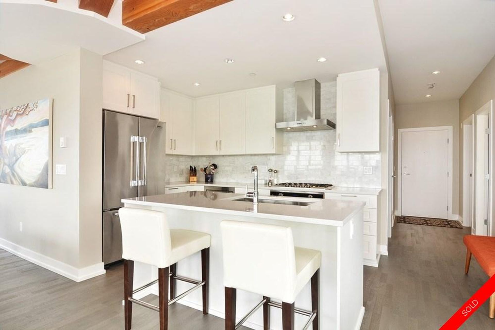 Welcome to Saltaire. Luxury living in the Heart of White Rock, Quality built by reputable builder Ledingham McAllister. 4 year old building still under warranty. This beautiful like new 2 Bed & Den area , 2 bath unit is a great layout. Large 1,350 open floor plan with bedrooms on opposite sides of the unit. Beautiful open gourmet chefs kitchen with high end Stainless Steel Appliances, gas stove, quartz island & Wood beam details on the ceiling. Huge wrap …around deck with 180 degree Ocean Views ,perfect for lounging and those summer BBQ'S & Sunsets. Leave the car at home and Walk to the beach, shops, restaurants, banks & more. 2 Parking , 1 Storage locker. Pets welcome - Call Today!